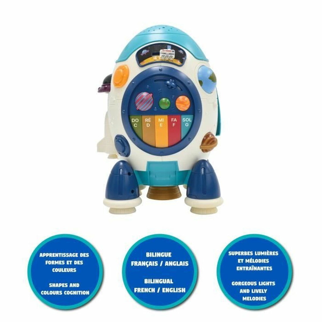 Projektor Lexibook Mi raketa s projektorjem zvezd je izobraževalna in zabavna naprava, posebej zasnovana za otroke od 5 let naprej, ki združuje zabavo in učenje o vesolju. Z rdečo (rouge) barvo, ki pritegne najmlajše, ta projektor deluje kot poučno orodje, ki projicira zvezdne slike za ustvarjanje pristnega vzdušja in spodbujanje radovednosti o vesolju. Vključuje tudi interaktivne kvize in glasbo, kar izboljša izobraževalno izkušnjo ter spodbuja razvoj kognitivnih in spominskih sposobnosti na zabaven in dinamičen način. Njegov vmesnik in vsebina sta na voljo v francoščini, kar omogoča jezikovno potopitev in spodbuja večjezično učenje že od zgodnjih let. Lexibook, znan po otroških izdelkih s pedagoškim pristopom, ponuja s tem modelom projektor, ki združuje vizualno in zvočno stimulacijo z izobraževalnim namenom, idealen za dopolnitev domačega ali šolskega učenja. Kombinacija projekcije, kvizov in glasbe v eni napravi omogoča interaktivno učenje, ki spodbuja tako zabavo kot izobraževanje o vesolju na dostopen in varen način za otroke. Skupaj je ta projektor vsestranska izobraževalna rešitev, ki otroke uvaja v osnovne pojme vesolja skozi multisenzorično izkušnjo, prilagojeno njihovi starosti in učnemu nivoju.