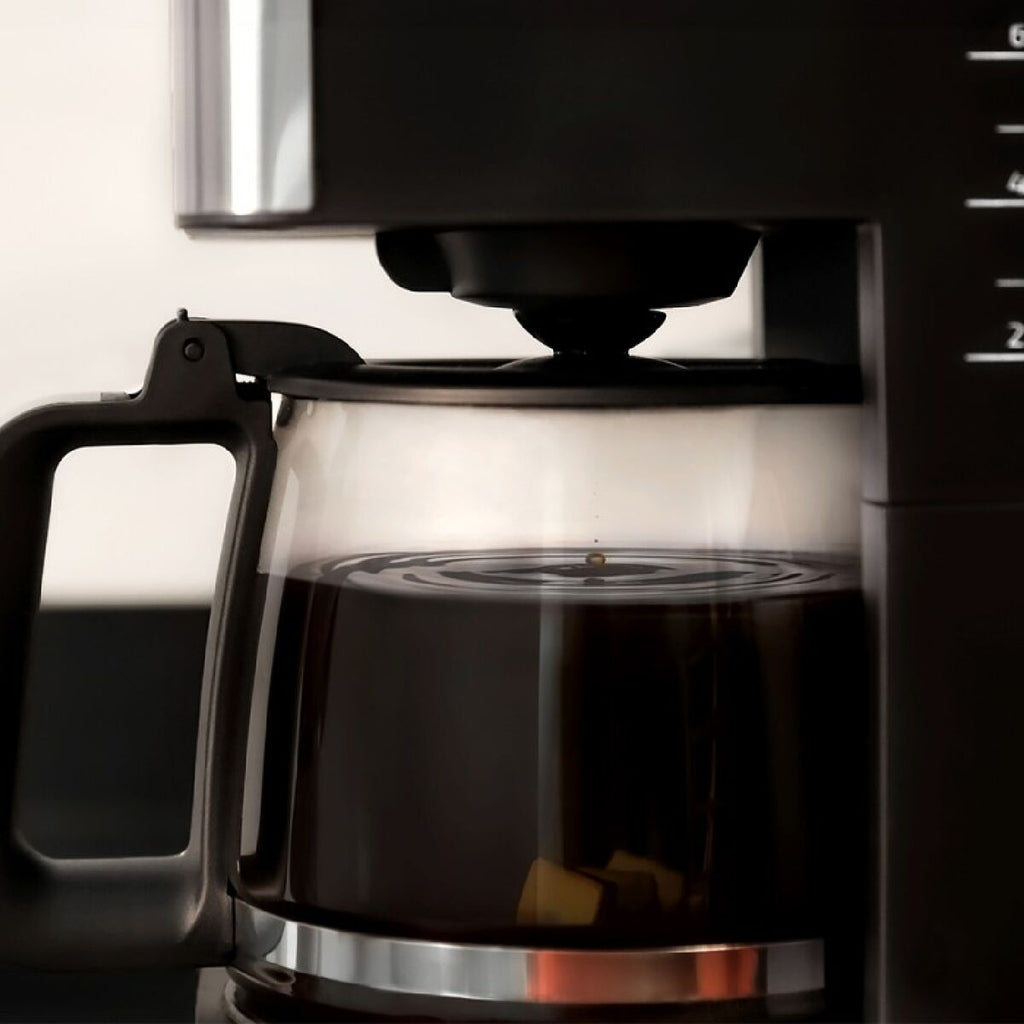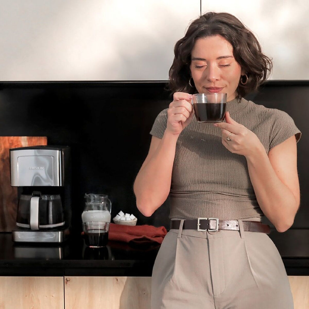 Coffee 56 Heat kapljični kavni aparat znamke Cecotec je praktična in učinkovita rešitev za pripravo kave doma ali v pisarni s kapaciteto do 1,3 litra, kar ustreza približno 12 skodelicam, idealno za več uporabnikov hkrati. Ta kavni aparat izstopa po moč 800 W, ki omogoča hitro in enakomerno segrevanje ter optimalno ekstrakcijo kave za intenziven in uravnotežen okus zahvaljujoč tehnologiji ExtremeAroma, ki izboljša senzorično izkušnjo z neprekinjenim pršenjem in kapljanjem, kar poudari aromo in okus sveže pripravljene kave. Oblikovan je z izjemno trpežno stekleno vrčem, ki prenese nenadne temperaturne spremembe in naključne udarce, kar zagotavlja vzdržljivost in varnost pri vsakodnevni uporabi. Poleg tega ima nerjaveče jeklo zaključke, ki ne le dajejo moderen in eleganten videz, ampak tudi povečujejo odpornost proti obrabi in olajšajo čiščenje. Med pomembnejšimi funkcijami ima trajni filter, ki preprečuje uporabo enkratnih filtrov, kar spodbuja bolj trajnostno in ekonomično uporabo, ter sistem samodejnega izklopa, ki zagotavlja udobje in varnost z izklopom aparata po koncu priprave. Njegova konstrukcija vključuje nedrsečo podlago za stabilnost med uporabo. Kavni aparat ohranja kavo na primerni temperaturi z avtomatsko funkcijo ohranjanja toplote, ki ohranja optimalen okus in temperaturo za uživanje sveže pripravljene kave v vsaki skodelici. Skupaj Coffee 56 Heat kapljični kavni aparat znamke Cecotec združuje moč, kapaciteto in napredno tehnologijo z robustno in funkcionalno zasnovo, kar ga uvršča med zanesljive in praktične izbire za uporabnike, ki iščejo kakovost in zmogljivost v domačem ali manjšem pisarniškem kavnem aparatu.