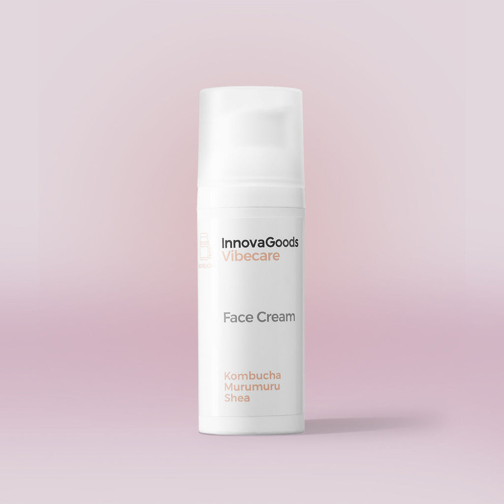 Vlažilna krema za obraz Vibecare InnovaGoods Kombucha neguje, vlaži, mehča, ščiti, obnavlja in zagotavlja elastičnost. Naravne sestavine. PA: kombuča, karitejevo maslo in murumuru, ognjičevo olje in olje makadamije, pantenol in Symcalmin®.