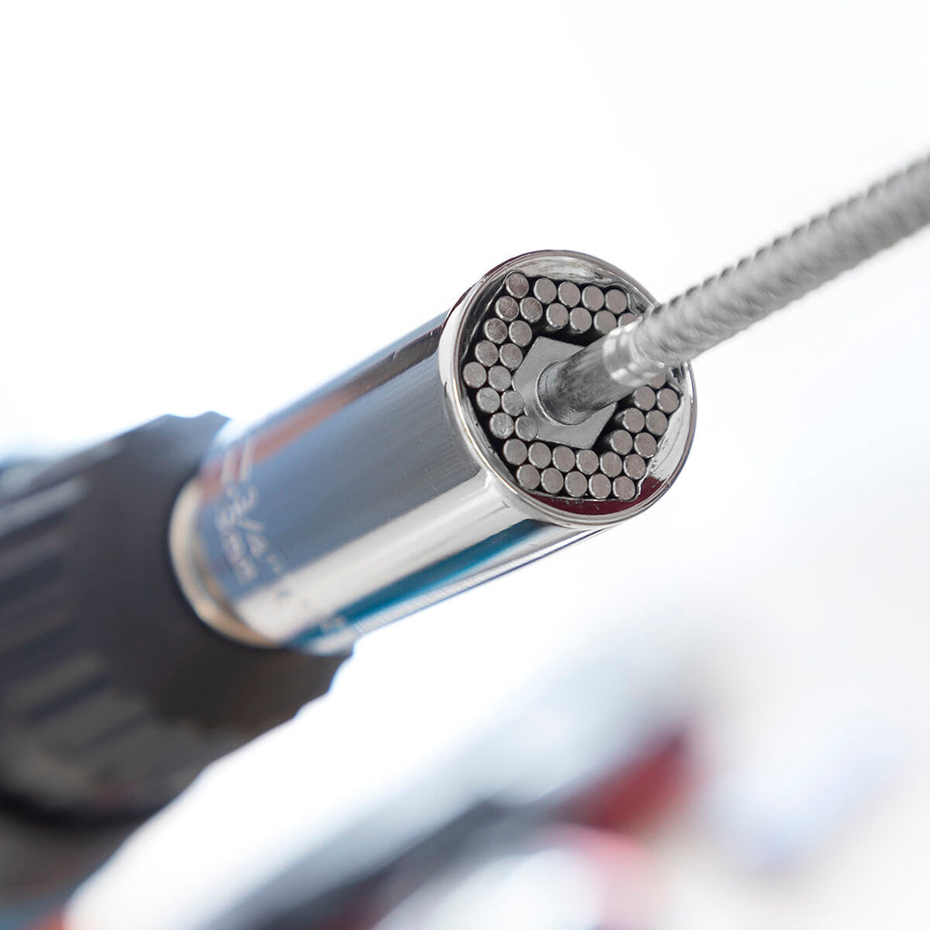 Inovativen in vsestranski univerzalni nasadni ključ z dodatki, ki vam omogoča enostavno privijanje in odvijanje katere koli vrste matic, vijakov, kavljev, konic itd. Prilagodi se poljubni velikosti in obliki znotraj svojih dimenzij - primeren za vijake med 7-19 mm. Zahvaljujoč priloženemu univerzalnemu priključku ga je mogoče enostavno vstaviti v kateri koli ključ, električni ali ročni vrtalnik ali gonilnik z zamenljivimi nastavki. Vključuje dodatek za podaljšanje dosega in kolenčast nastavek z naklonom 105° za težko dostopna mesta ali mesta. kjer je malo prostora. Poleg tega je izdelan iz visoko kakovostnih in odpornih kovin ter je zelo enostaven za uporabo, transport in shranjevanje. S tem izvirnim in praktičnim, kompaktnim ter lahkim orodjem pozabite na prenašanje težkih kovčkov ali škatel z množico nasadnih ključev za različne velikosti in vrste vijakov.