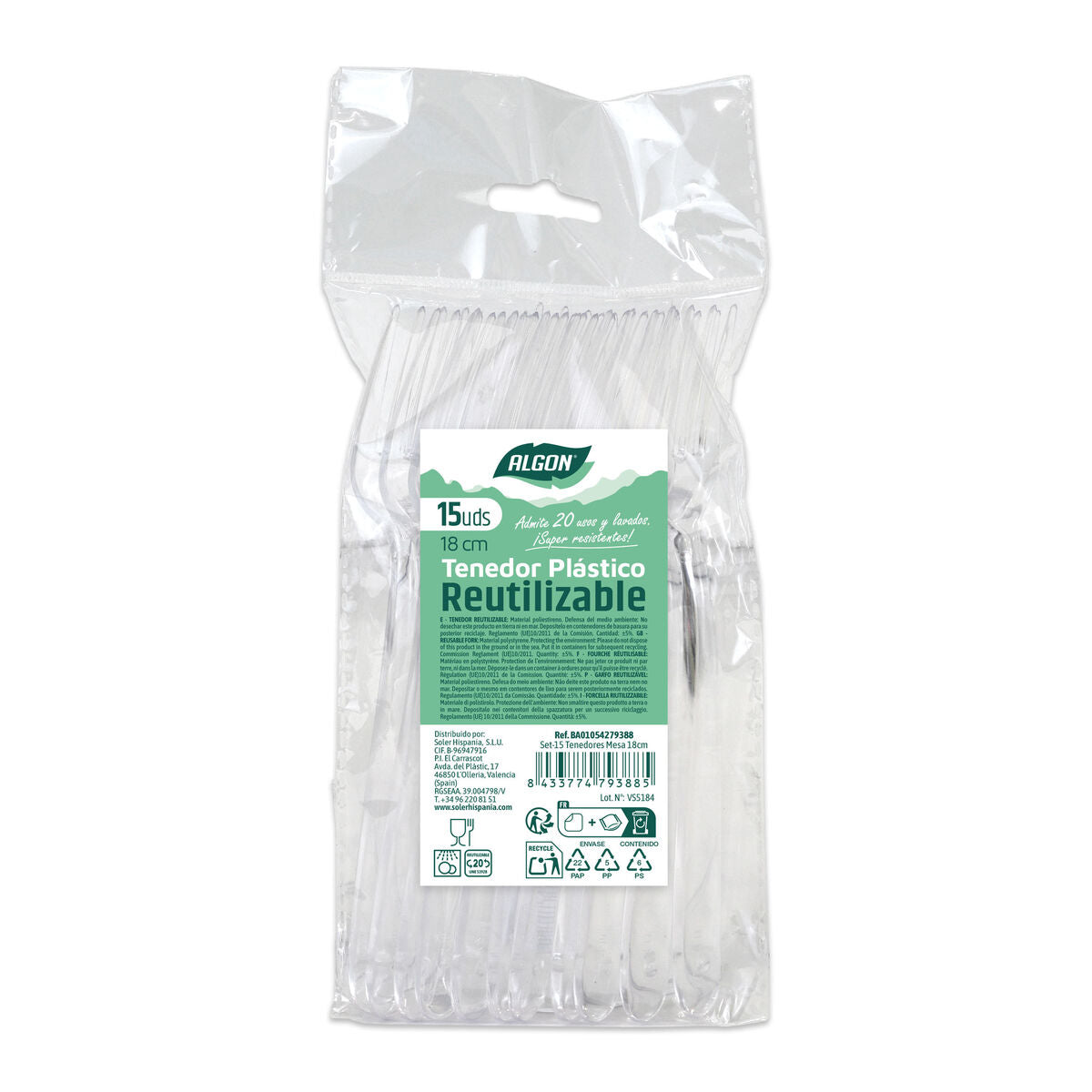Če želite poskrbeti tudi za najmanjše podrobnosti vašega doma in uporabljati nove izdelke, ki bodo olajšali vaše življenje, kupite Set vilic za večkratno uporabo Algon Prozorno 18 cm 15 Kosi (24 kosov) po najugodnejši ceni.