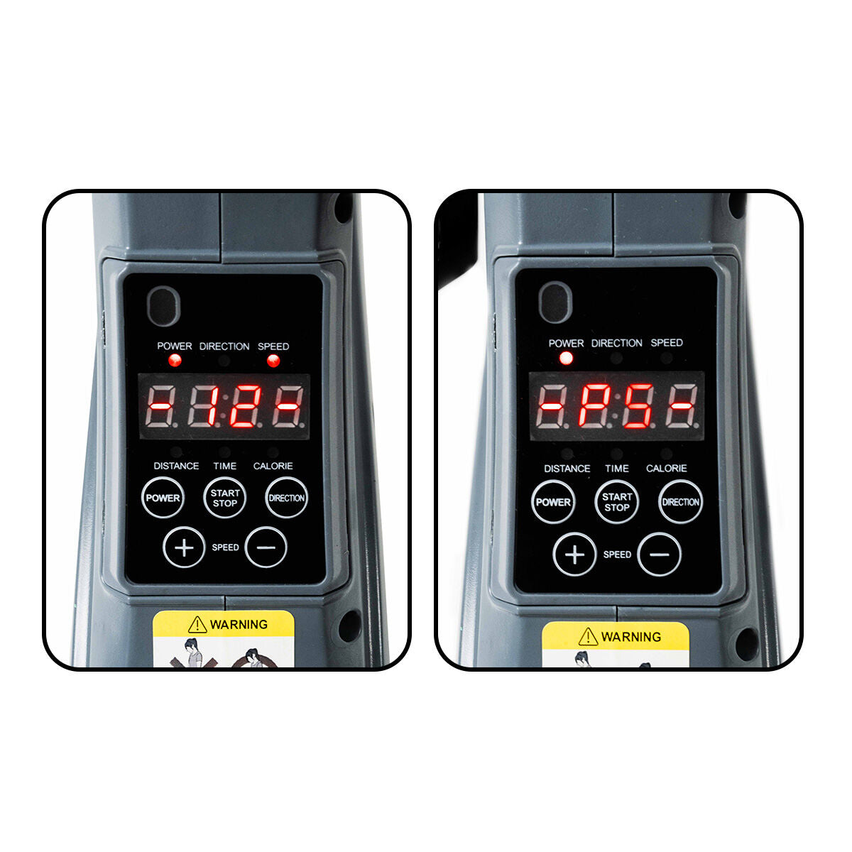 - Digitalni LCD števec, samodejni izklop: ti statični pedali z motorjem imajo samodejni izklop po 30 minutah. Večfunkcijski elektronski števec z LCD zaslonom prikazuje hitrost, čas, razdaljo in porabljene kalorije.