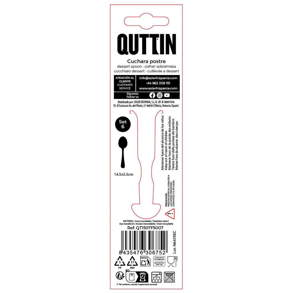 Če želite poskrbeti tudi za najmanjše podrobnosti vašega doma in uporabljati nove izdelke, ki bodo olajšali vaše življenje, kupite Set desertnih žlic Quttin Sofia Črna 14,5 x 3,5 cm 6 Kosi (12 kosov) po najugodnejši ceni.