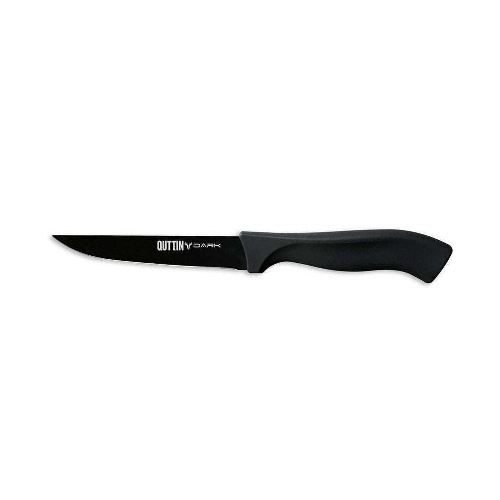 Dark nož znamke Quttin je kuhinjski nož, zasnovan za funkcionalnost in vzdržljivost v profesionalni ali domači kuhinji. Ima 11 cm rezilo iz nerjavečega jekla, ki zagotavlja dolgo obstojnost rezila, odlično rezalno sposobnost, odpornost proti koroziji in enostavno vzdrževanje. Ročaj je izdelan iz črnega plastike, kar omogoča trden in udoben oprijem ter prispeva k lahkosti orodja za lažje rokovanje pri daljši uporabi. Njegova črna barva daje prefinjen in moder videz, ki se ujema z vsakim slogom kuhinje. Izdelek je pakiran v 48 kosih, namenjen gostinskim strokovnjakom ali okoljem, ki potrebujejo količinsko zalogo z zagotovljeno enotnostjo in kakovostjo. Z dimenzijami približno 21 x 2 x 2 cm in debelino 1 mm je nož uravnotežen za natančne reze pri vsakodnevnih kuhinjskih opravilih, od rezanja do sesekljanja različnih sestavin. Kombinacija izbranih materialov in ustrezne velikosti naredi ta nož vsestransko orodje, primerno za različne kulinarične priprave brez izgube učinkovitosti ali varnosti. Dark nož znamke Quttin je praktična in zanesljiva izbira, ki zadovolji potrebe tako domačih uporabnikov kot strokovnjakov, zahvaljujoč vzdržljivosti, ergonomiji in pakiranju v količini.