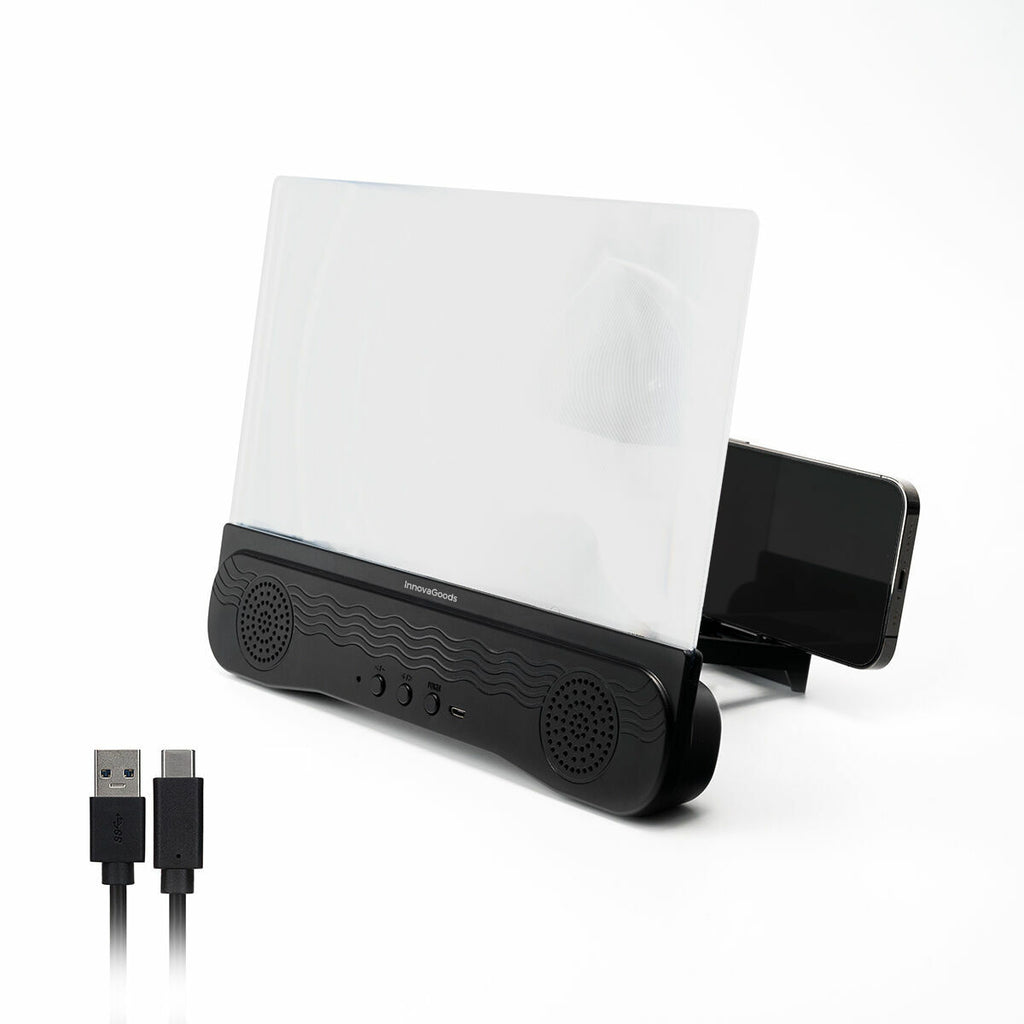 Ta polnilni ojačevalnik zaslona mobilnega telefona z BT zvočnikom je odličen pripomoček za uživanje v avdiovizualnih vsebinah mobilnega telefona z večjo jakostjo, jasnostjo in udobjem. Nastavljiva glasnost. Zaslon: 12“, povečava x 3. Vključuje kabel USB-C.